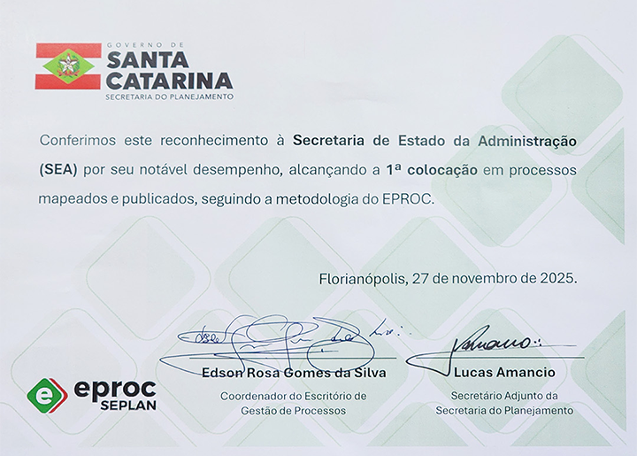Durante o evento, foram entregues certificados de reconhecimento às Secretarias que se destacaram pelo desempenho em gestão de processos. A SEA alcançou a 1ª colocação no ranking de processos mapeados, seguindo a metodologia estabelecida pelo EPROC.